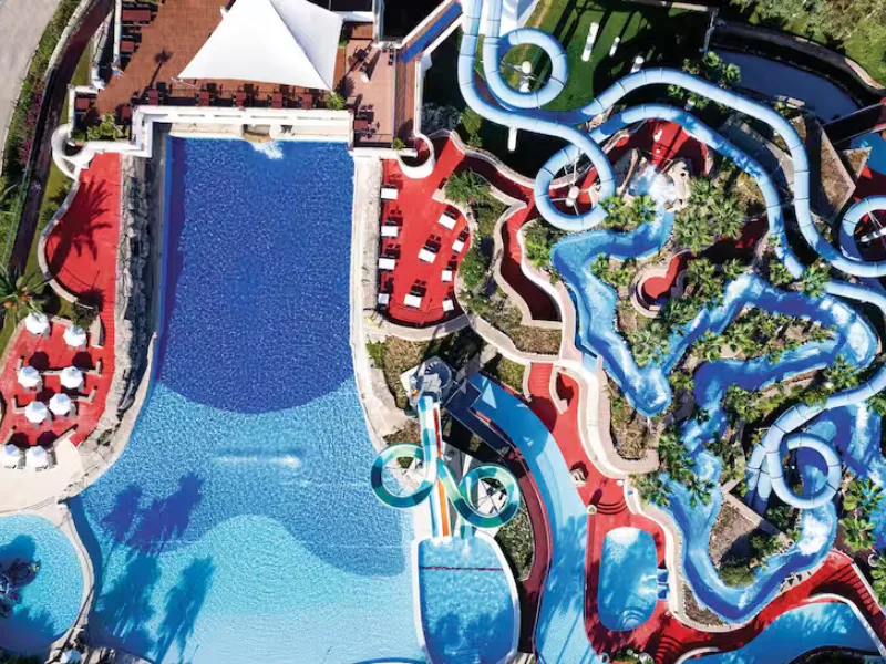 4* hotel with Aqualand Waterpark Entry, splash park, 3 kids swimming pools, family rooms and all inclusive. Short 35 mins transfer.