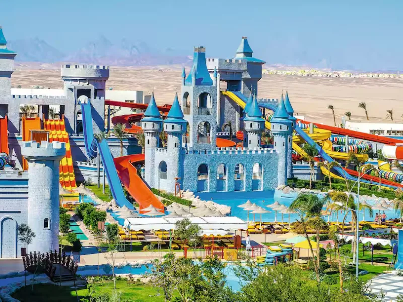 4* hotel in Hurghada with waterpark, 5 swimming pools, family rooms which sleep up to 5 people and all inclusive.