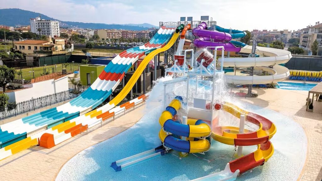 - Waterslides and splash pool