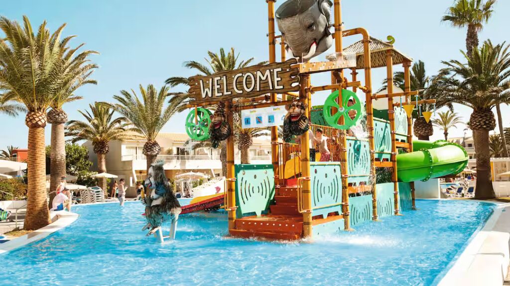 The TUI Suneo Marinda Garden Club is a popular choice for families looking for toddler friendly apartments in Majorca. The apartments are a short walk to Cala’n Bosch beach and have a gorgeous swimming pool, kids pool and unlimited access to the Aquarock waterpark which is right next door. The Aquarock has lots of waterslides and a splash park for little ones. There’s also a playground. All Inclusive is available.