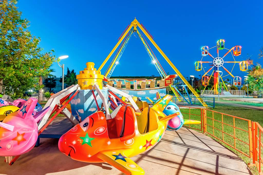 The Aqua Fantasy Aquapark Hotel & Spa has a massive 31 slide waterpark which is free for guests staying at the hotel. Most of the rides in the waterpark have height restrictions so can only be used by children over 120cm but there is a 400m lazy river and a wave pool for smaller children. The Treasure Island area is perfect for little ones with lots of mini slides, water fountains and sprays. The Elephant Pool is a small paddling pool near the beach – perfect for babies who want to splash around! The Aqua Fantasy Aquapark also has a playground with a climbing frame and slides, mini golf and a mini disco. 2 bedroom family suites and All Inclusive Plus are available.