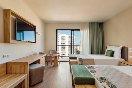 The hotel has a great range of rooms which sleep up to 4 people, and have a flat screen TV, balcony, kettle, fridge and air conditioning.