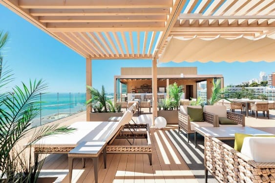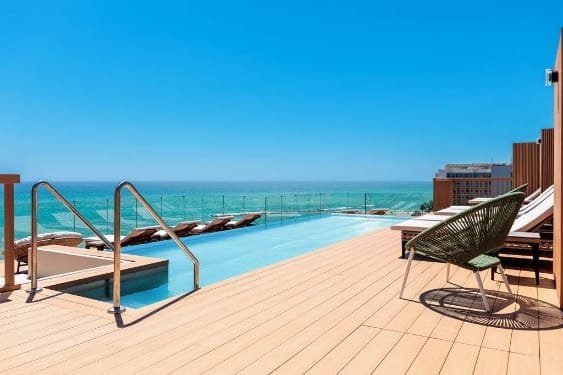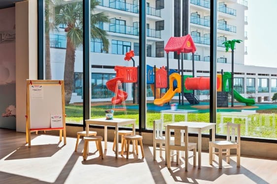 This beachfront hotel complex has a toddler-friendly splash park with a pirate ship, mini slides, and a friendly octopus statue! The hotelâs spectacular location right by the beachfront gives you incredible views of the glittering Puerta Marina. The interior of the hotel also has a clean, contemporary sheen with stylish and comfortable furnishings. The outdoor playground means that little ones can enjoy the sunshine that Benalmadena enjoys, or they can go inside to the indoor soft play centre.