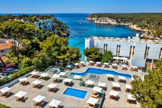 The 5* Melia Cala Galdana hotel is in a great location right on Cala Galdana beach, which is one of the most beautiful and toddler friendly beaches in Menorca. The Melia has 2 outdoor swimming pools, a shady children’s playground and a creche for children aged 8 months – 4 years. Family rooms and suites are available
