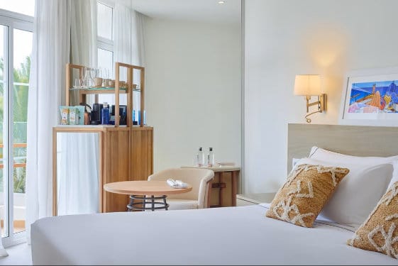 The hotel also makes the most of its shorefront position with a stylish beach club, with a restaurant, sunbathing terrace and an infinity pool.