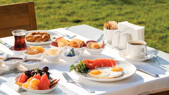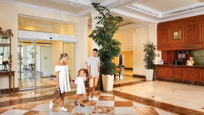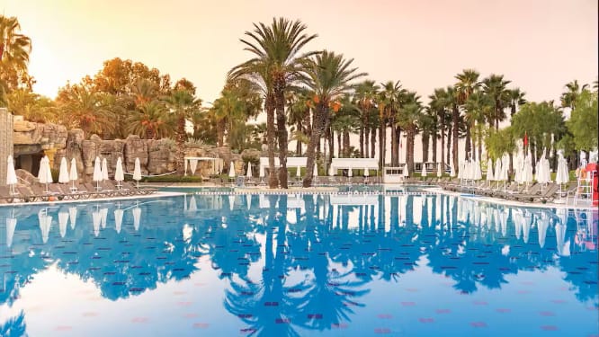 The all-inclusive package gives you access to various dining experiences, such as Turkish and Italian cuisines. The hotel-run kids’ club caters for little ones from newborns to five years old, with a separate club for children aged five to twelve.
