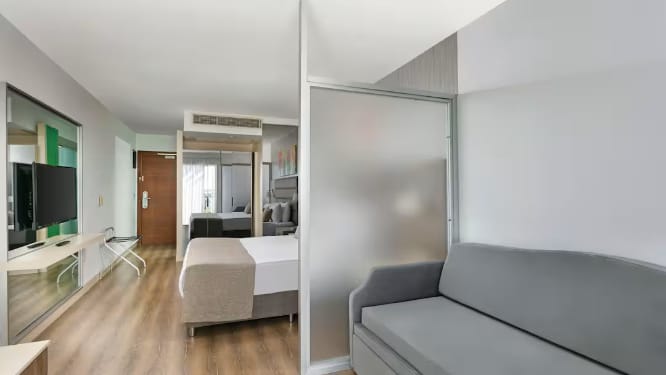 2 bedroom family rooms sleep up to 4 people and have double or twin beds and 2 extra beds in the bedroom. Rooms come with air-conditioning, TV, minibar and a balcony or terrace.