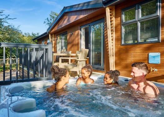 - Luxury lodges with hot tubs which sleep up to 10 people