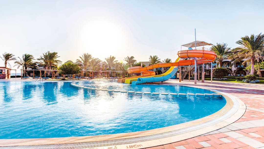 You can be sure of the sunshine at this sizzling spot by the shorefront of Sharm el Sheikh. You’ll also enjoy relaxing at the hotel’s pools under the shade of towering palm trees. The Redsina Sharm el Sheikh also boasts a fantastic waterpark with a series of spiralling chutes and half-pipe slides. There’s a smaller section with fountains and mini slides that’s helpfully covered by a canopy for added shade for little ones. And with four restaurants and seven bars, it’s fair to say dining is a real highlight here. Along with the main Magico buffet restaurant you can expect at all TUI Magic Life hotels, you can also visit the three Mediterranean specialty restaurants during your stay. For activities, you can make the most of the sunny weather with tennis courts, football, archery, and outdoor aerobics all on offer. There’s even a water sports centre down by the beach too.