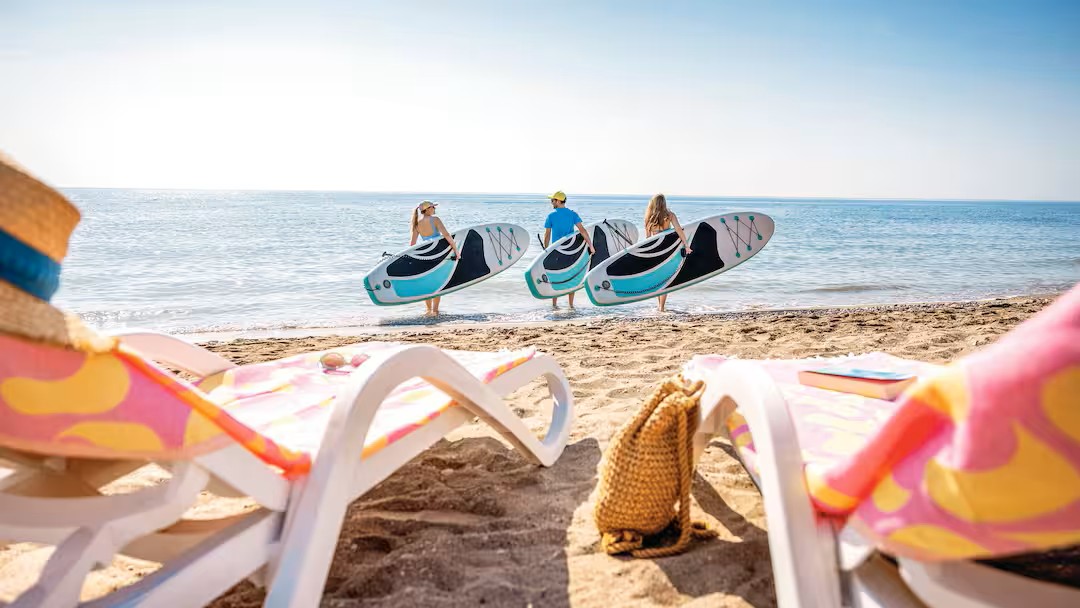 Nestled directly on the edge of the sparkling Aegean Sea, the TUI MAGIC LIFE Sarigerme is a beachfront paradise that promises an unforgettable all-inclusive family holiday. Splash around in the lively main Activity Pool or let the little ones enjoy their own dedicated Kids’ Pool. Enjoy direct access to the private beach, complete with beach cabanas for a day of relaxation. Water-loving families can take advantage of a wide range of free non-motorised watersports.  The resort offers a packed activity programme with a free children’s club to keep younger guests busy. Challenge the family to a game on one of the four tennis courts (with free group courses), or try out archery, beach volleyball, table tennis, and water polo.